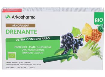 Prodotto Arkofarm. Contiene 20 flaconcini da bere. La sua azione drenante è supportata da piante quali finocchio, mate', uva, ...