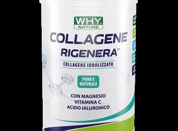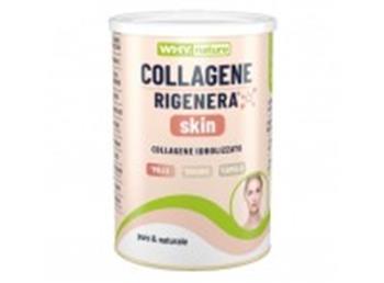Barattolo di polvere contenente collagene idrolizzato, acido ialuronico e altre sostanze utili a sostenere la pelle e gli annessi ...